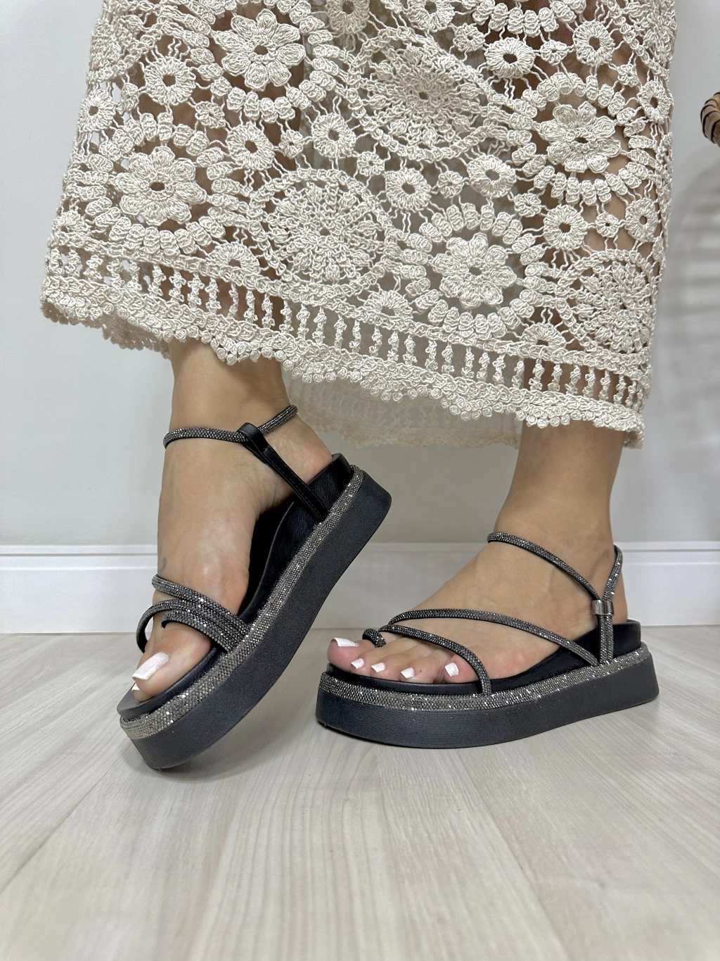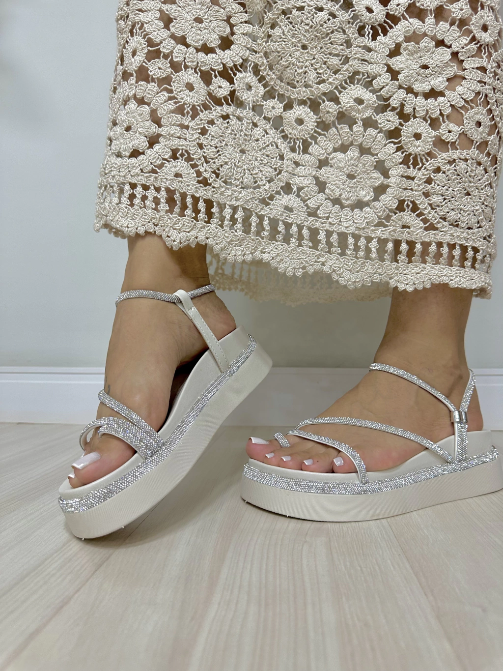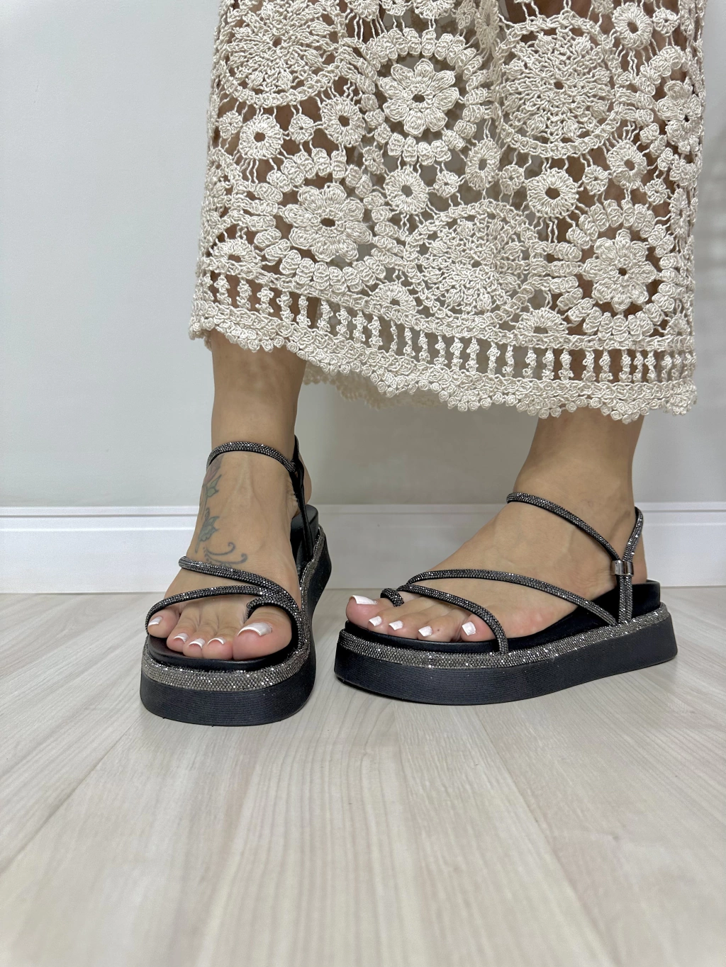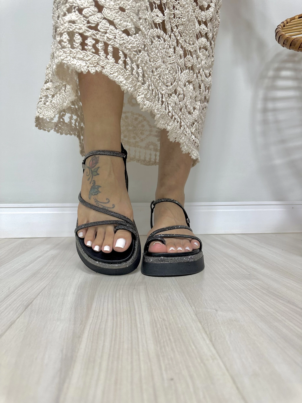 Com design moderno e tiras finas cravejadas em pedrarias, ela traz o equilíbrio perfeito entre conforto e sofisticação.