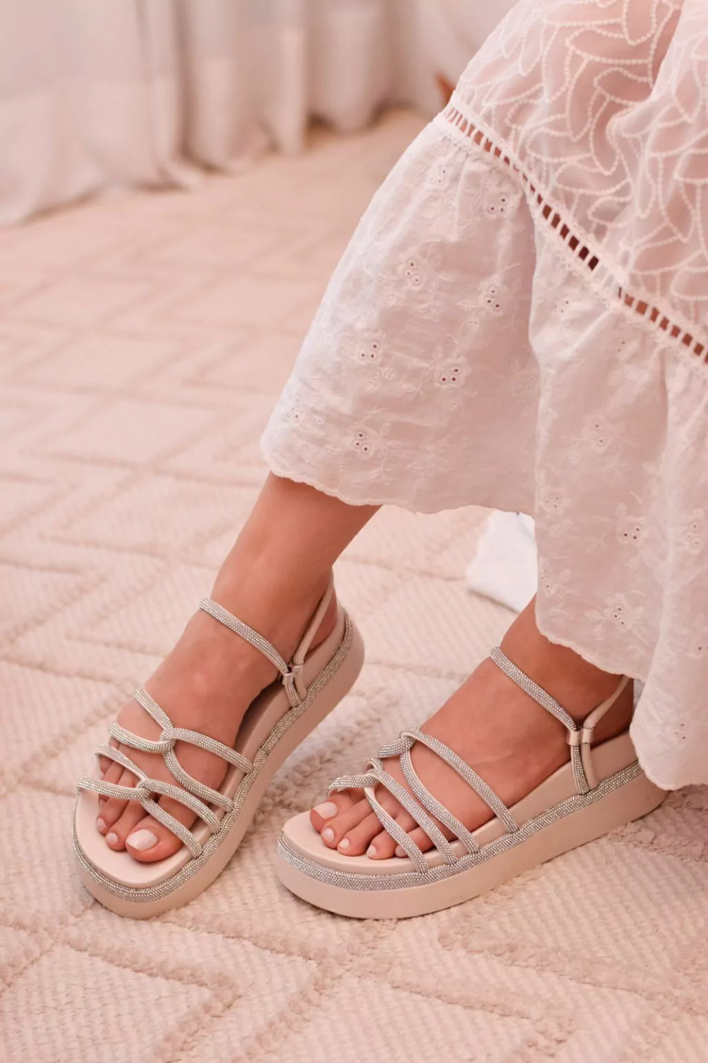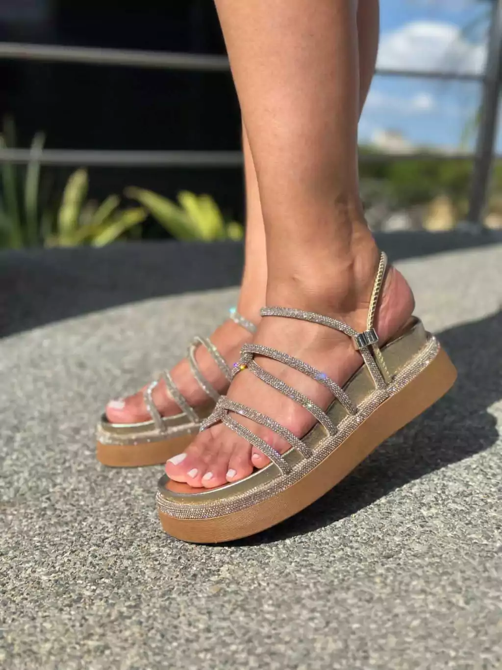 Seu design cravejado traz o toque de brilho que transforma qualquer look, enquanto a plataforma leve garante estabilidade e bem-estar em todos os momentos.