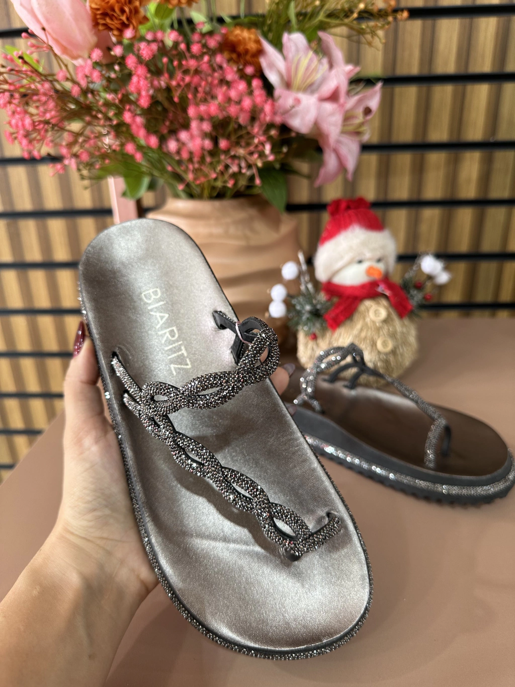 Com design moderno e tiras trançadas cravejadas, ela traz um visual glamuroso e sofisticado — perfeito pra quem quer brilhar em qualquer ocasião. ✨