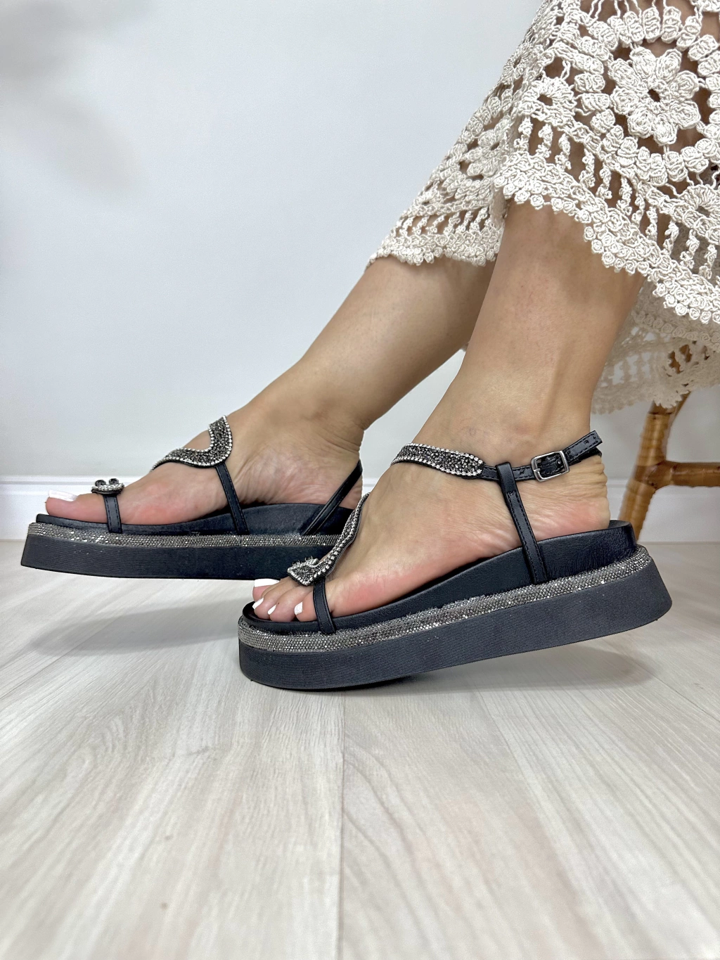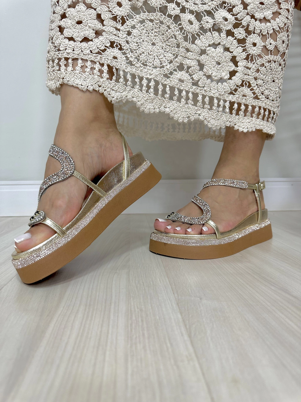 Com tiras cravejadas em pedrarias delicadas que desenham o pé com elegância, ela traz um toque sofisticado e moderno para o seu visual — ideal para quem ama se sentir linda e confortável ao mesmo tempo.